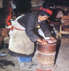 藏族生活在號稱“地球第三極”的青藏高原上,高寒的高原氣候,嚴酷的生存環境,造就了藏民族勇敢剛毅的民族個性,也形成了藏民族獨具高原特色的飲食文化,藏鄉的酥油茶便是其中一朵奇葩。酥油茶是藏鄉群眾日常生活所必需的一種飲料,也是藏族人民待客、禮儀、祭祀等活動不可或缺的用品,極具民族特色和文化內涵。剛進藏的漢族干部,要適應高原環境,首先要過生活關,其中重要的一條就是能不能喝酥油茶。顧名思義,酥油茶由酥油、茶和食鹽三種原料做成。