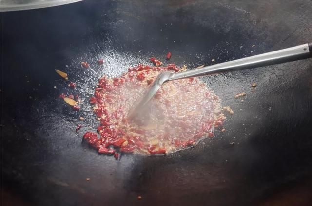 撒一把切成短節的干辣椒,