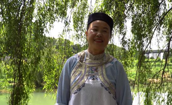 桐木嶺村布依族女子服飾,內穿斜襟短衣,外戴圍腰,腰間系彩帶。斜襟上衣脖領下,有各色絢麗的圖案,范圍較大,在斜衽上,也有圖案裝飾。