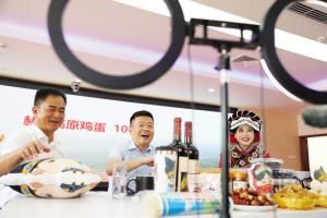 接下來出場的是葡萄酒,這是新推出的產(chǎn)品。天葡莊園田園綜合體項目的產(chǎn)業(yè)園區(qū)項目招商和落地工作,我是從頭到尾都參與的。作為中央統(tǒng)戰(zhàn)部引進的幫扶項目,這個坐落在六曲河鎮(zhèn)的葡萄園區(qū),占地面積近200畝,如今種有夏黑、旭旺、陽光玫瑰等葡萄品種。