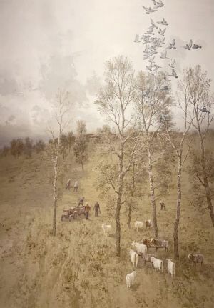 《收獲的季節(jié)》 波里亞 油畫 320cm×200cm 新疆美術(shù)館館藏