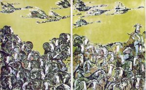 《涌動(dòng)的節(jié)奏·翔》 陳浩 版畫 88cm×55cm 全國美展展出作品、新疆美術(shù)館館藏