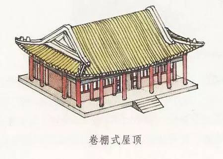 卷棚式屋頂也稱元寶脊,其屋頂前后相連處不做成屋脊而做成弧線形的曲面,也就是說卷棚式屋頂的正脊是弧形,與普通的人字形屋頂不一樣,沒有屋頂端的正脊。譬如北京頤和園中的諧趣園,屋頂的形式全部為卷棚式屋頂。