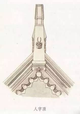 建筑的屋頂分為前后兩面坡,兩坡上端在屋脊處相交,形成建筑屋頂的正脊。這種兩面坡屋頂從山墻立面看,其屋頂的形象就像是一個“人”字,所以把這種屋頂形式叫做人字頂。人字頂是一般住宅較常用的屋頂形式,硬山頂、懸山頂都屬于人字頂。