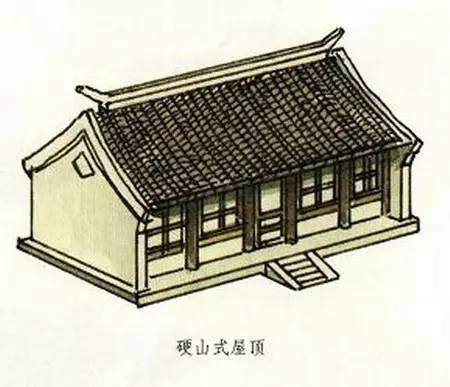 硬山式屋頂有一條正脊和四條垂脊。這種屋頂造型的最大特點是比較簡單、樸素,只有前后兩面坡,而且屋頂在山墻墻頭處與山墻齊平,沒有伸出部分,山面裸露沒有變化。明、清時期及其后,硬山式屋頂廣泛地應用于我國南北方的住宅建筑中。正因為它等級比較低,所以屋面都是使用青瓦,并且是板瓦,不能使用筒瓦,更不能使用琉璃瓦。