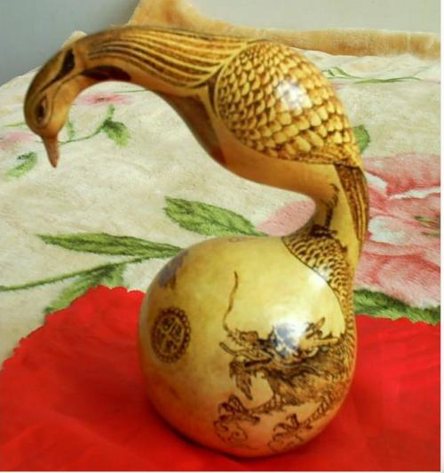 甘肅臨夏雕刻葫蘆是民族傳統工藝美術品的杰出代表,以其品種豐富、色澤黃白、皮質華潤光潔,雕刻栩栩如生而聞名。葫蘆雕外形呈橢圓形或S形,表面多以雕刻山水人物、文字等,再飾以松墨,十分美觀。臨夏葫蘆雕刻經過十幾代雕刻藝人的不懈藝術探索,形成了其獨特的藝術風格、別致的造型和卓越的技藝,堪稱甘肅“隴上一絕”,成為臨夏對外交往的一張文化名片,具有極高的觀賞和收藏價值。
