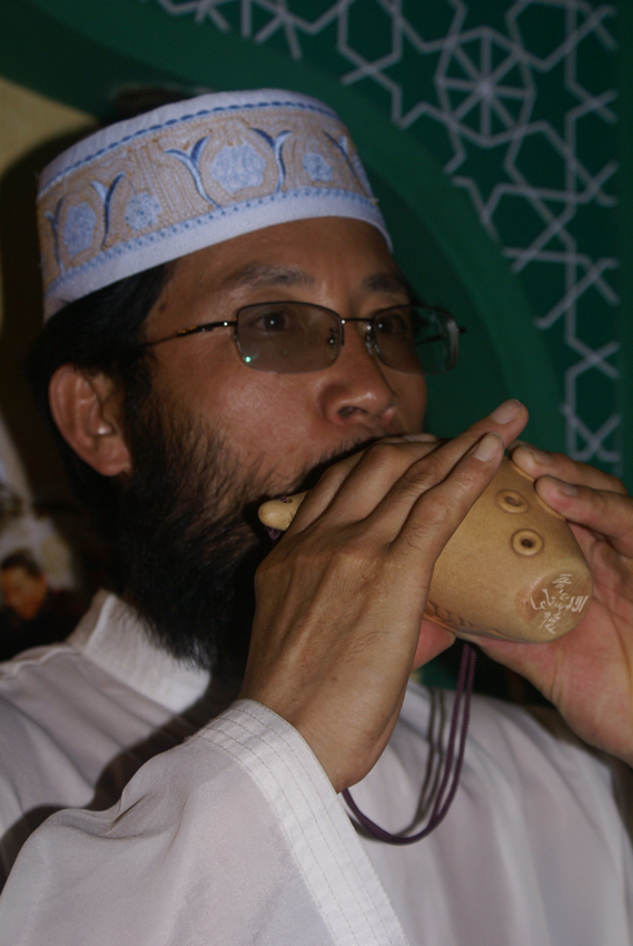 哇鳴,古代稱為“塤”。流行于寧夏回族自治區。因其取材方便,制作簡單,很受群眾喜愛。琴身用黃膠泥捏成中空的扁豆形、雞蛋形或牛頭形,再用小榻扎幾個小孔,一般前四、后三,上邊留一吹口,曬干即可。演奏技巧類似漢族的蕭,按需要放孔、壓孔。音量小,音域也比較窄,只能吹奏簡單的曲子。最近,寧夏回族自治區音樂界人士,在原有模型基礎上,改造研制出了一種音量大、音域寬的哇鳴(圖為哇鳴演奏,劉軍供圖)。