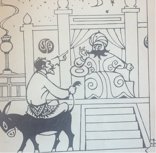 阿凡提借來幾兩金子,騎著毛驢到野外,就坐在黃沙灘上細細地篩起金子來。