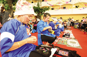 圖為活動之一的貴州省黔東南州第二屆“百佳繡娘”決賽現場。經過層層選拔出的100名繡娘在此飛針走線,同秀技藝,展現了少數民族民間文化獨特的藝術魅力。