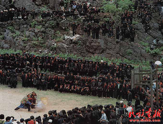 黑衣壯青年男女的戀愛熱情浪漫,一個個扔向簸箕的香包和紅帶子,不久就會連接兩顆年輕的心,引出一段醉心動人的愛情故事