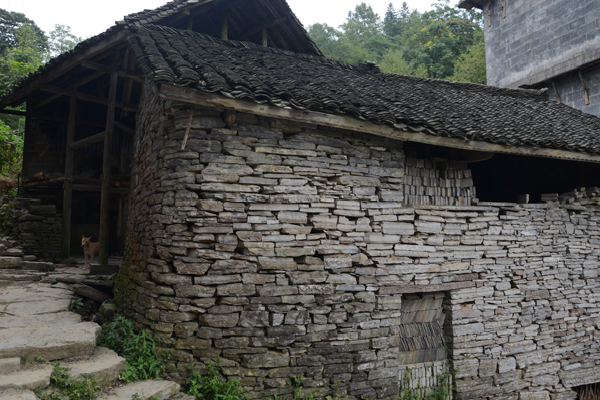 石板房以石條或石塊砌墻,墻可壘至5至6米高;以石板蓋頂,風雨不透??傊?,除檁條、椽子是木料外,其余全是石料,甚至家用的桌、凳、灶、缽都是石頭鑿的。一切都樸實無華,固若金湯。這種房屋冬暖夏涼,防潮放火,相對采光較差。