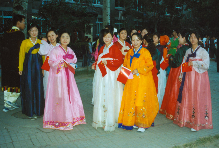 女子婚前穿鮮紅的裙子和黃色的上衣,衣袖上有色彩繽紛的條紋;婚后則穿紅裙子和綠上衣。年齡較大的婦女,可在很多顏色鮮明、花樣不同的面料中選擇。“短衣長裙”,是朝鮮族服飾中最具傳統的服裝。