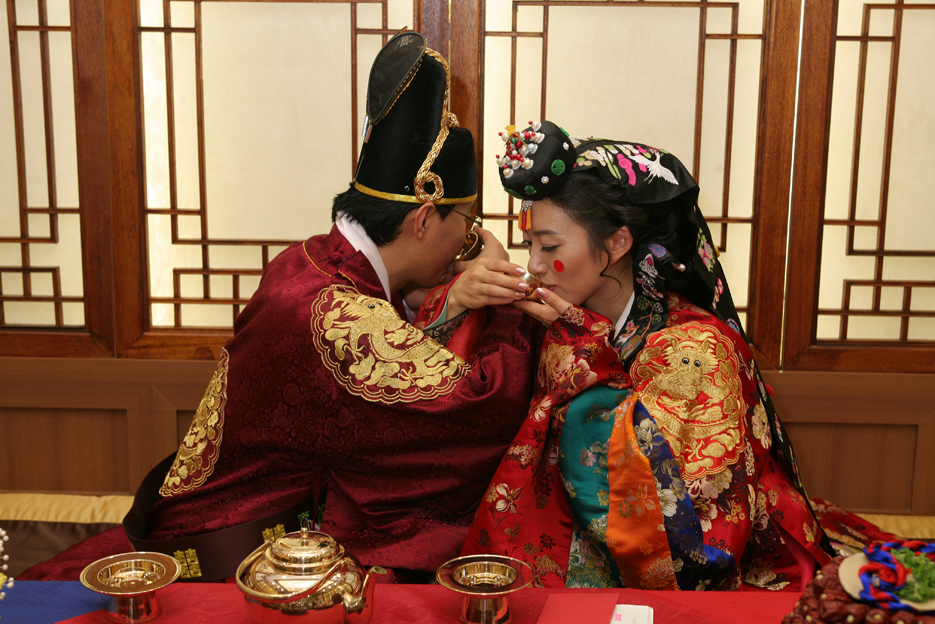 在過去,朝鮮族婚俗沿用中國古代的六禮習俗,非常傳統復雜,禮儀繁多。現如今朝鮮族人民的婚俗雖然受到時代變遷的影響,進行了一定的簡化,但是整體流程和習俗仍保留了朝鮮族特有的特點。從婚前、結婚到婚后都有著特定的程式,主要有納彩、納幣和迎親3個程序,在這些程序中又貫穿著多種禮儀。