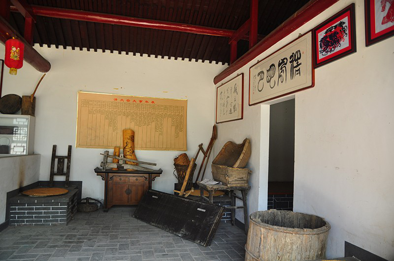 村委會大院被改造成小型的滿族文化廣場,矗立著滿族祭祀所用的索倫桿,一旁則是滿族文化展室。它將滿族傳統(tǒng)建筑形式即俗稱的“口袋房、萬字炕,煙筒建在地面上”的風(fēng)格展現(xiàn)得淋漓盡致,外觀古樸雅致,青磚青瓦與紅色門窗遙相呼應(yīng)。走進室內(nèi),李鳳田又介紹說,滿族人以西為大,進門的一間是灶房,西側(cè)才是起居室。“起居室通常是兩間或三間相連而成,又稱上屋,里面南、北、西三面筑有大土坯炕,形似‘萬’字,也就是滿族人所說的萬字炕。萬字炕的南北炕與屋子的長度相等,是典型的東北大炕。而正面的西炕較為狹窄,僅供擺放貢品使用,不能在上面放雜物。否則,是對祖宗大不敬。”