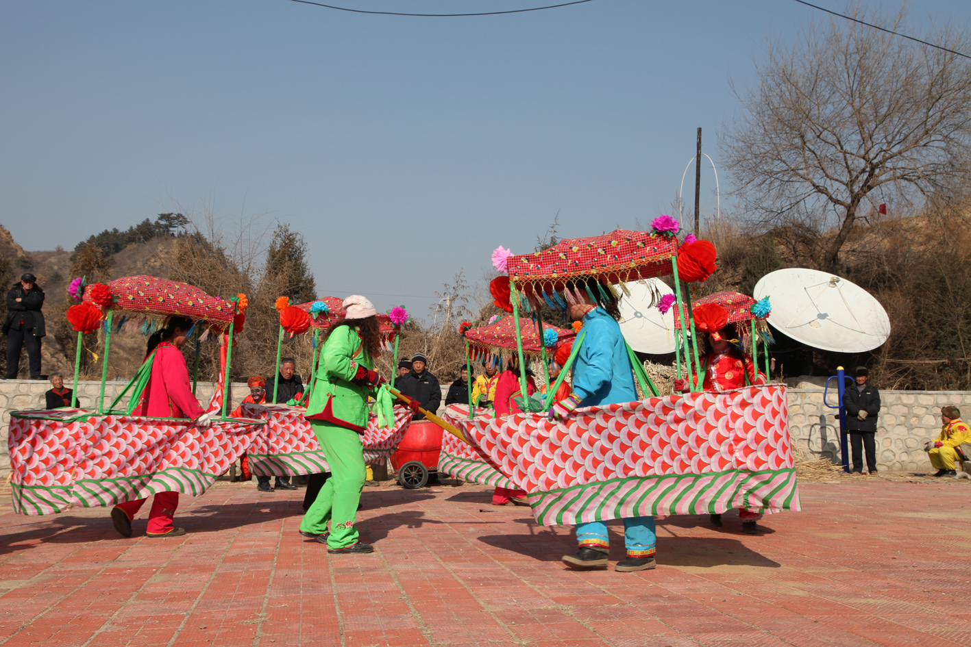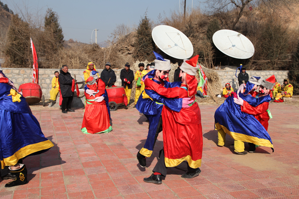 “二貴摔跤”,表演者實為一人,穿戴巧妙制成的道具,就可以扮演兩個扎小辮的頑皮兒童扭打摔跤。單人扮雙人摔跤,模仿得維妙維肖,一時難辨真假,風趣幽默。