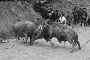 從江縣激利的斗牛比賽是當地苗侗群眾最喜歡的娛樂活動。