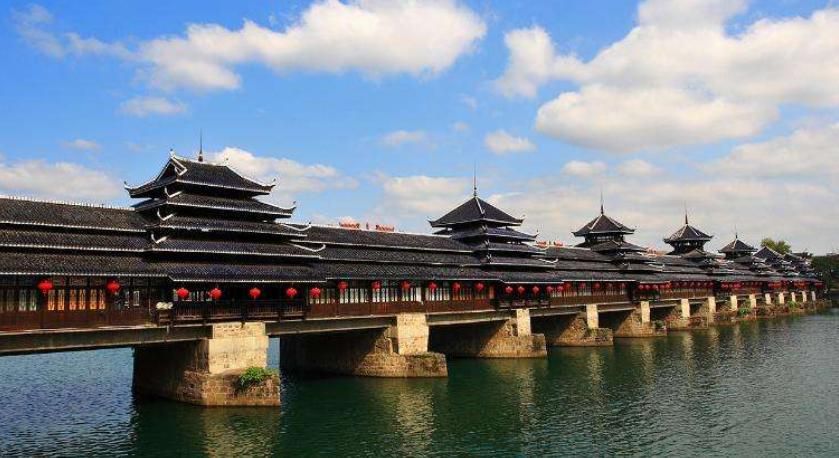 俗話說:苗寨喜歡依山而立,侗族依山傍水而居。侗族人民的生活和橋有著極大的關聯,因此風雨橋也是侗族文化里十分具有特色的一部分。侗寨里面分布著山路,河谷等,寨與寨之間都會修建好幾條風雨橋,既供人過路,又可在風雨來臨之時做避雨的地方,除此之外,風雨橋造型也沿襲了侗族建筑里的傳統文化,形態優美、結構穩固,因此又稱為花橋。