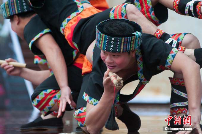 12月6日,在中國瑤族之鄉廣西金秀瑤族自治縣的盤王節上,當地瑤族百姓在跳”刀舞”