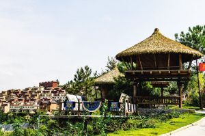 廣西壯族自治區南丹縣政府近年建設了瑤鄉新區,新民居保持古老白褲瑤的民居特色,建筑風格融入了牛角、瑤王印、陀螺、銅鼓等瑤族文化元素。易地搬遷使深山中的白褲瑤群眾搬進了寬敞明亮、干凈整潔、設施齊全的瑤鄉新區。2019年9月拍攝。