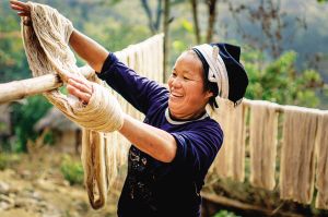 白褲瑤婦女紡紗織布做衣,新買的棉紗要經過蒸煮、漂洗、涼曬才可織布,而年輕一代的白褲瑤婦女大多直接到市場上買白布。2007年10月拍攝。