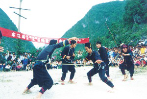 日前,廣西大化瑤族自治縣七百弄鄉和東蘭縣三弄瑤族鄉的布努瑤同胞分別舉行隆重的活動,慶祝自己的民族傳統節日“祝著節”。“祝著節”,亦稱祖娘節、二九節、盤古節或瑤年,是瑤族人民隆重的節日之一。這天,布努瑤同胞表演了一臺臺古色古香的文藝節目。當地各族群眾和毗鄰鄉鎮的農民朋友也匯集一堂,和布努瑤兄弟姐妹一道慶賀這個盛大的民族節日。