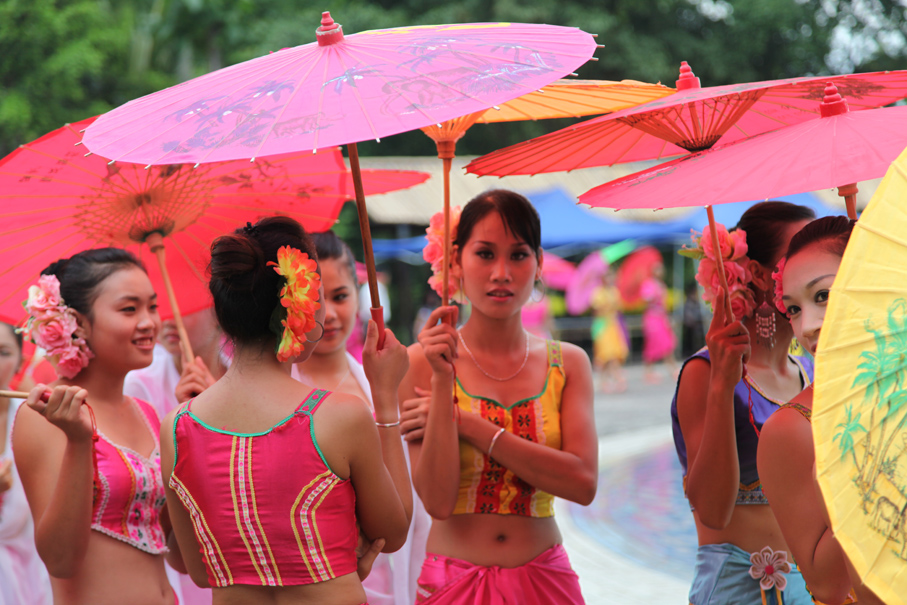 傣族新年。時在傣歷六月二十四到二十六日(夏歷四月中旬),節(jié)期三、五天。節(jié)日清晨,男女老幼沐浴更衣,到佛寺賧佛,即給佛像灑清水洗塵,然后互相潑水,除疾消災。后演為以潑水為戲的節(jié)日。相傳,古有火魔無惡不作,搶走7個姑娘。最年輕的姑娘儂香,得知了殺死火魔的秘密:拔下它的頭發(fā)把它勒死。魔頭成一團火球,落在哪里,哪里就起火。姑娘們即挑水相潑,滅了邪火。此傳說相沿成習,漸成潑水節(jié)。一說此俗源于印度,婆羅門教徒每年此時到河中沐浴,洗去罪惡;年邁者不能下河,子女便為其潑水洗罪。后傳入中國傣族地區(qū)。