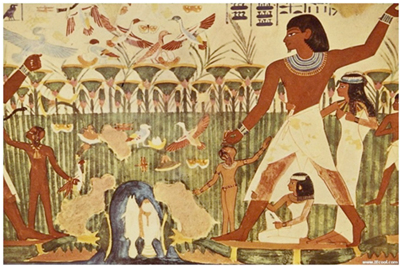 這是一門男人的手藝,父系相傳。在堅(jiān)硬的牛骨上,起刀、轉(zhuǎn)承、刻下,再施以黑色染料(少許有彩色,但以黑色居多),骨簪通體扁平,紋飾繁復(fù)卻極有空間和秩序感。人形骨簪有單人頭和雙人頭兩種。骨簪分頂部、中部、尾部三個(gè)部分。頂部為黎族傳說中峒主(也被稱為“總管三”的部落首領(lǐng))的尖頂高帽,中部為其側(cè)面像。根據(jù)黎族傳說,該首領(lǐng)是民族英雄,象征著祖先的文治武功。有趣的是,這一人像的刻畫,與古埃及壁畫人物造型的“正面律”如出一轍,即人面部的扭曲:眼睛正面,臉卻是側(cè)面。這一特征,一定程度上體現(xiàn)了古埃及人的生死觀,靈魂不滅,人能復(fù)活,而復(fù)活要憑借維持完好的軀體,因此在透視畫法沒有發(fā)明出來之前,人的五官是要盡可能的呈現(xiàn),尤其是最重要的雙眼。
