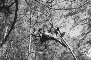 此外,如碗口粗的松樹是最好搖蕩的,太粗的樹枝彈性不好,太細的樹枝又承受不了人體之重。至于距離,樹與樹之間伸手可及是最好攀爬的,但相隔四五米遠的樹也能扳彎身處的樹木蕩過去。