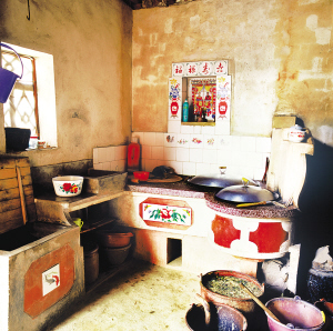 近20多年來,畬族民居基本上是磚木、石木結構,用磚墻隔間。通常蓋兩層,樓上有出廊到平臺。廚房多設在墻角,灶臺的墻上是灶王、灶婆的神龕,灶臺上串聯3口小鐵鍋。兩個灶膛可同時燒火,做飯、炒菜兩不誤。最里面的鍋始終裝著熱水,木板鍋蓋中間再開一小圓鍋蓋,既方便取水又保溫。灶臺高至小腹,方便炊事,燒火的灶眼與灶臺間有擋墻,既擋煙灰,又可放置調料。灶臺左側放置切菜板,下面是倒臟水的小池子,將臟水直排到外面,有的還擺著電炊具或液化氣灶。一個兩平米左右的三角區域規劃得緊湊合理,主婦活動自如,有條不紊。在旁邊擺著八仙桌和長條凳,吃飯、會客極為方便。