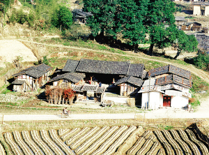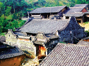 畬族主要聚居在浙江省和福建省山區的丘陵、山谷盆地。浙江景寧是我國唯一的畬族自治縣。畬族聚居的村寨都在離縣城不遠的大山里,大都選擇避風向陽、有水源的地方建房成村。在村寨四周栽種松樹、楓樹、榅樹、苦櫧,房前屋后種毛竹、果樹。村口有樹能擋風,屋后種樹能蓄水,空氣也格外新鮮,因此,便有了“造成風水畫成龍”的畬族諺語。