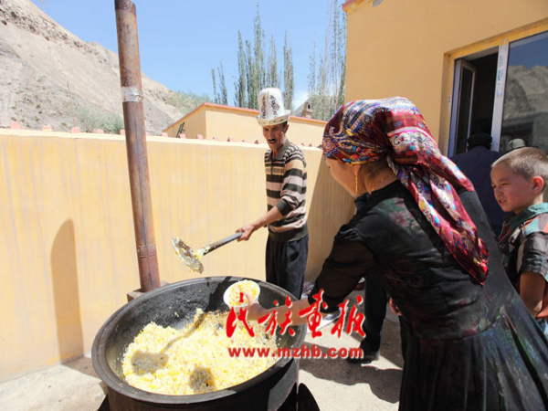 親朋好友們在院子里支起大鍋做抓飯、煮肉,招待賓客