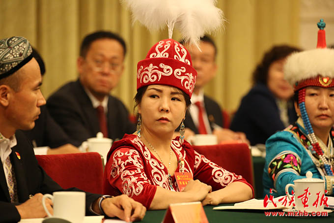 十九大代表、新疆維吾爾自治區討論會上古麗孜娜提?吐坎發言(滕俊 攝影)