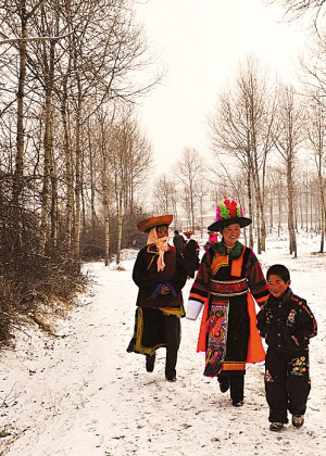 隨著時代的更替,土族女性的服飾發生了很大變化,有的傳統服飾已消失,有的服飾經過推陳出新,重放光彩。如舊時的繡花高領,如今變成直翻兩用領;蓋在“扭達”上的長頭巾——“扭達爾秀巾”,變成了今日土族女性使用的短頭巾。現今,廣大土族女性,不僅喜穿本民族服飾,而且還愛著時尚服飾,她們或使土族服飾時裝化,或使時裝土族服飾化,豐富了土族的服飾文化。