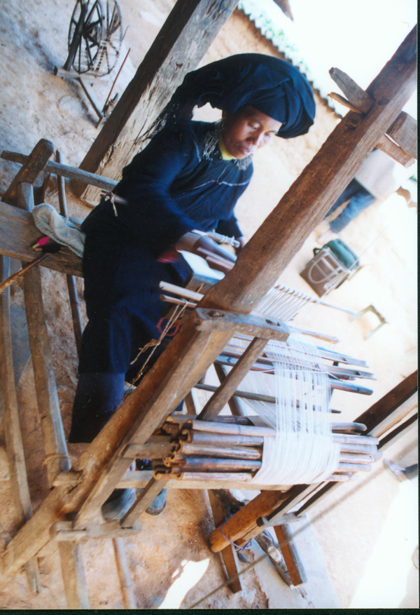 紡織中的布朗族婦女(劉軍攝)