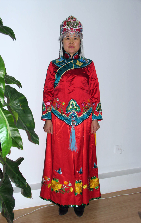 剛出嫁的女子的服飾要比少女的服飾更加艷麗,并且梳理的發(fā)型也會(huì)有所差異,媳婦梳的是“盤龍髻”,額前有“劉?!保X后有“燕尾”,頭頂上烏發(fā)蓬起,盤成髻形,日常生活中將辮梳成雙辮或兩“抓髻”,合起成為一個(gè)大“疙瘩髻”。頭發(fā)抹頭油,沒有頭油的,用榆樹皮泡的水也粘稠光亮。面部可以涂粉,口可以涂口紅,可以染指甲等。頭部髻上插著金簪,腕上佩帶金(銀、玉)手鐲。錫伯族已婚婦女一般都會(huì)穿戴耳環(huán)、手鐲、戒指等裝飾品。此外,錫伯人喜愛在褲子小腿處扎系黑色的綁腿帶子。綁腿帶視年齡也會(huì)有所不同,未出嫁的女子一般扎系紅色、粉紅色腿帶,而在舉行葬禮儀式時(shí)扎系白色的綁腿帶子。