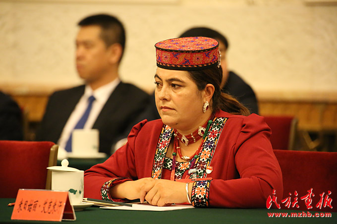 十九大代表、新疆塔什庫爾干塔吉克自治縣塔什庫爾干鄉小學黨支部書記米日姑麗·艾克米汗(塔吉克族)(滕俊攝影)