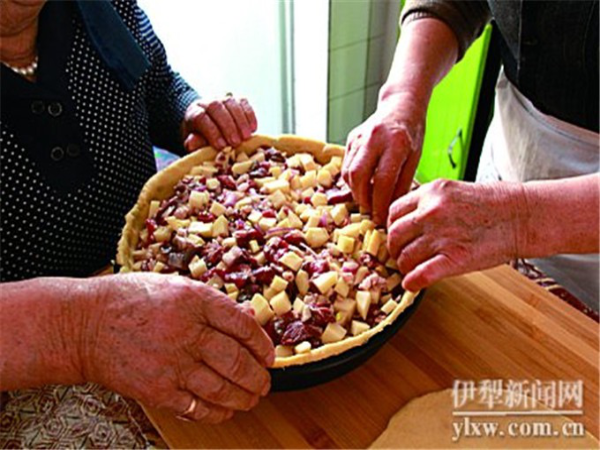 拜列西是塔塔爾族的一種傳統美食。68歲的買斯胡旦·熱合木是伊犁州級非遺項目塔塔爾族拜列西制作技藝的傳承人。她告訴記者,塔塔爾族家里來客人的時候,用餐程序往往分為三步:先上茶;其次,端來用肉湯煮的面,同時奉上煮熟的肉塊;接著,再擺上各式各樣的菜,其中,就有拜列西。