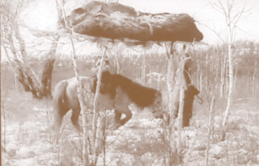 鄂倫春族的傳統(tǒng)葬法主要有風(fēng)葬、土葬、火葬和水葬。風(fēng)葬又稱天葬或樹葬,其葬法是:選擇四棵成對角的大樹,在距地面1米多高的地方截斷,上面搭木架或借助樹杈放棺材。成年人風(fēng)葬后通常還要進(jìn)行二次葬,即將其遺骨再土葬到氏族墓地里。游獵時期由于條件所限棺材非常簡陋,最初風(fēng)葬是借助樹杈搭木架,把死者安放在木架之上,再用樹枝覆蓋。土葬是挖一個長方形土坑,四壁用木桿壘起來,下面鋪草,上面蓋樺皮再埋土。后來人們用樺皮縫制或用柳樹條編制棺材,也有將空心樹從中間劈開,把尸體扣在中間的。最好的是“木刻楞”棺材,制作方式跟建造“木刻楞”房差不多,把截成長短適度的圓木兩頭砍成凸、凹形,使其相互咬合形成框架,底和蓋是用繩子或柳條把一些圓木排列著捆綁在兩根橫木上。這種“木刻楞”棺材堅固,不易被野獸破壞,多用于風(fēng)葬。