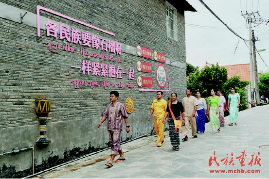 芒晃村屬芒市鎮典型的壩區傣族村寨,因城市發展需要,芒晃村緊緊圍繞“民族團結進步、產業發展優、基礎設施好、村風民風正”的目標,以凝聚人心為抓手,帶領村民變環境、轉民俗、抓產業、謀發展、促進步,營造了民族團結、向上向善的和諧氛圍。在芒晃村的發展中,在村黨支部帶領下,以“農村環境大整治,人人參與不可少;房前屋內勤打掃,清掃垃圾別亂倒;污水不要隨意倒,收集澆田當肥料”為標準,村民們慢慢養成了垃圾入箱、入池的好習慣,村莊環境一天天改善。為了增加村內綠化,村里黨員帶頭捐款購買綠化樹種,激發了群眾愛家護家的自覺性,全村男女老少紛紛捐款,自籌資金8000余元購買樹種,全村人齊心協力,一起栽種在進村道路兩旁,如今的芒晃道路兩旁綠樹成蔭,鳥語花香。
