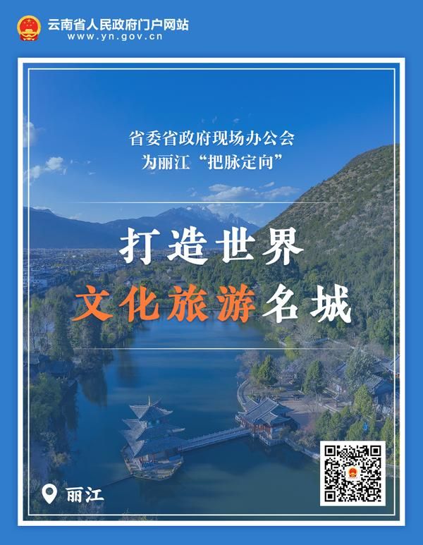 6月18日,省委、省政府召開麗江現場辦公會,對麗江未來發展的目標路徑和重大問題深入研究分析,明確要求麗江努力建設成為世界文化旅游名城、鄉村振興示范區、長江上游重要生態安全屏障。