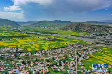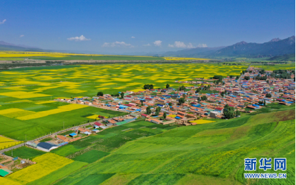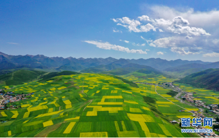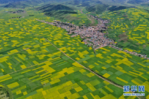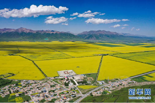 航拍門源縣油菜花海。新華網 宋忠勇 攝