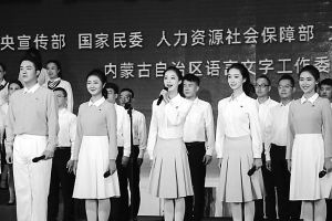 9月14日,來自中國傳媒大學、內蒙古大學的學生代表和鄂爾多斯市群眾代表在全國推普周開幕式上朗誦《讀中國》。新華社記者 朱文哲攝