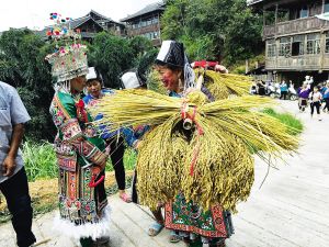 為何鼓藏節期間必須制作“百鳥衣”?這是村寨中古已有之的規定:鼓藏節期間所穿的“百鳥衣”必須是新制作的;如果是舊的“百鳥衣”,必須確保沒有穿著它參加過葬禮,但是參加過婚禮的“百鳥衣”是可以穿的。