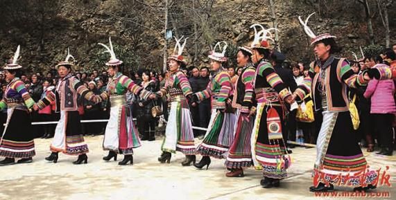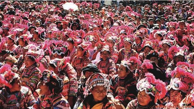 云南省楚雄彝族自治州永仁縣彝族賽裝節上的“一片紅”。