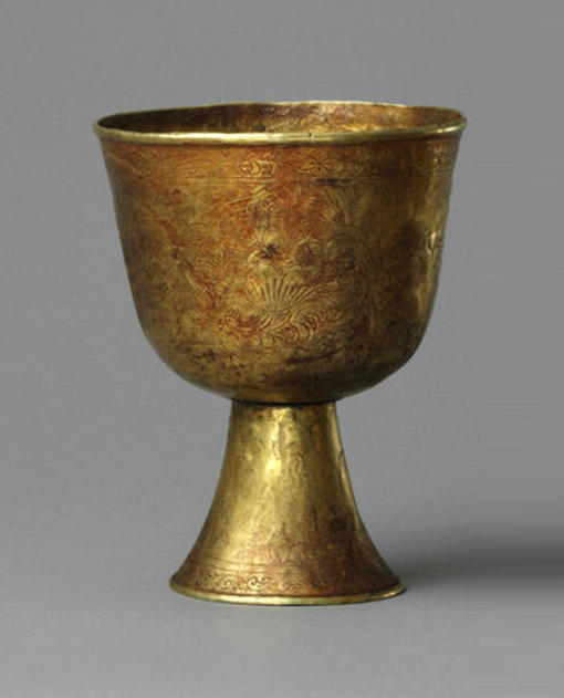 【圖為元代金質(zhì)鏨刻蓮花紋高足杯,內(nèi)蒙古自治區(qū)博物館藏】