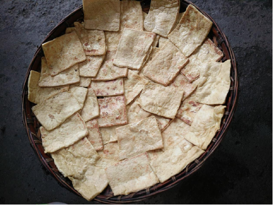 鍋烙豆腐:沿山鍋烙豆腐是精選上好的黃豆作原料,通過純手工制作成豆腐,切成方塊,用草木灰撒在上面,自然發酵兩天,再用清水洗凈,切成小塊狀,放入鐵鍋烙黃,沿山鎮以丁家制作的鍋烙豆腐最為有名。到沿山旅游玩耍的客人都會品嘗這一美食,口感外酥里嫩,即可煮食也可干炒或涼拌。