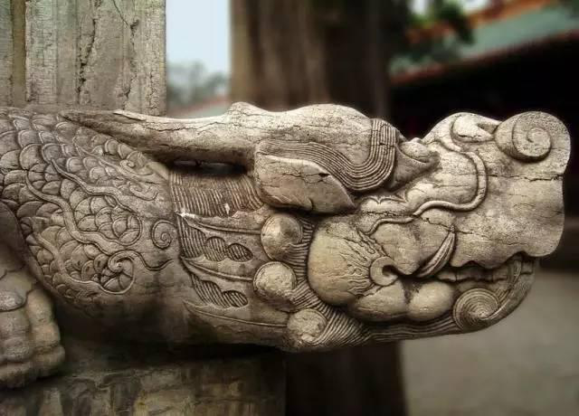 螭首是古代建筑石作制度中的主角之一,有平衡臺(tái)基望柱的重力和排水的功能,同時(shí)也是建筑上的裝飾構(gòu)件,是標(biāo)志著封建禮制建筑等級(jí)的象征,是實(shí)用與裝飾的完美結(jié)合的建筑裝飾小品。節(jié)奏和韻律是中國(guó)古建筑的重要特點(diǎn)。