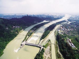 都江堰位于四川盆地西部的都江堰市,坐落于成都西部岷江之上,是中國最出名的水利工程之一,始建于2000多年以前的秦國,由李冰父子率眾所建。這座古老的無壩引水工程,是中國古代勞動(dòng)人民勤勞、勇敢、智慧的結(jié)晶。2000年11月,都江堰與青城山一起被聯(lián)合國教科文組織列入《世界遺產(chǎn)名錄》。世界遺產(chǎn)委員會(huì)是這樣評價(jià)它的:“建于公元前三世紀(jì),位于四川成都平原西部的岷江上的都江堰,是中國戰(zhàn)國時(shí)期秦國蜀郡太守李冰及其子率眾修建的一座大型水利工程,是全世界迄今為止,年代最久、惟一留存、以無壩引水為特征的宏大水利工程。”