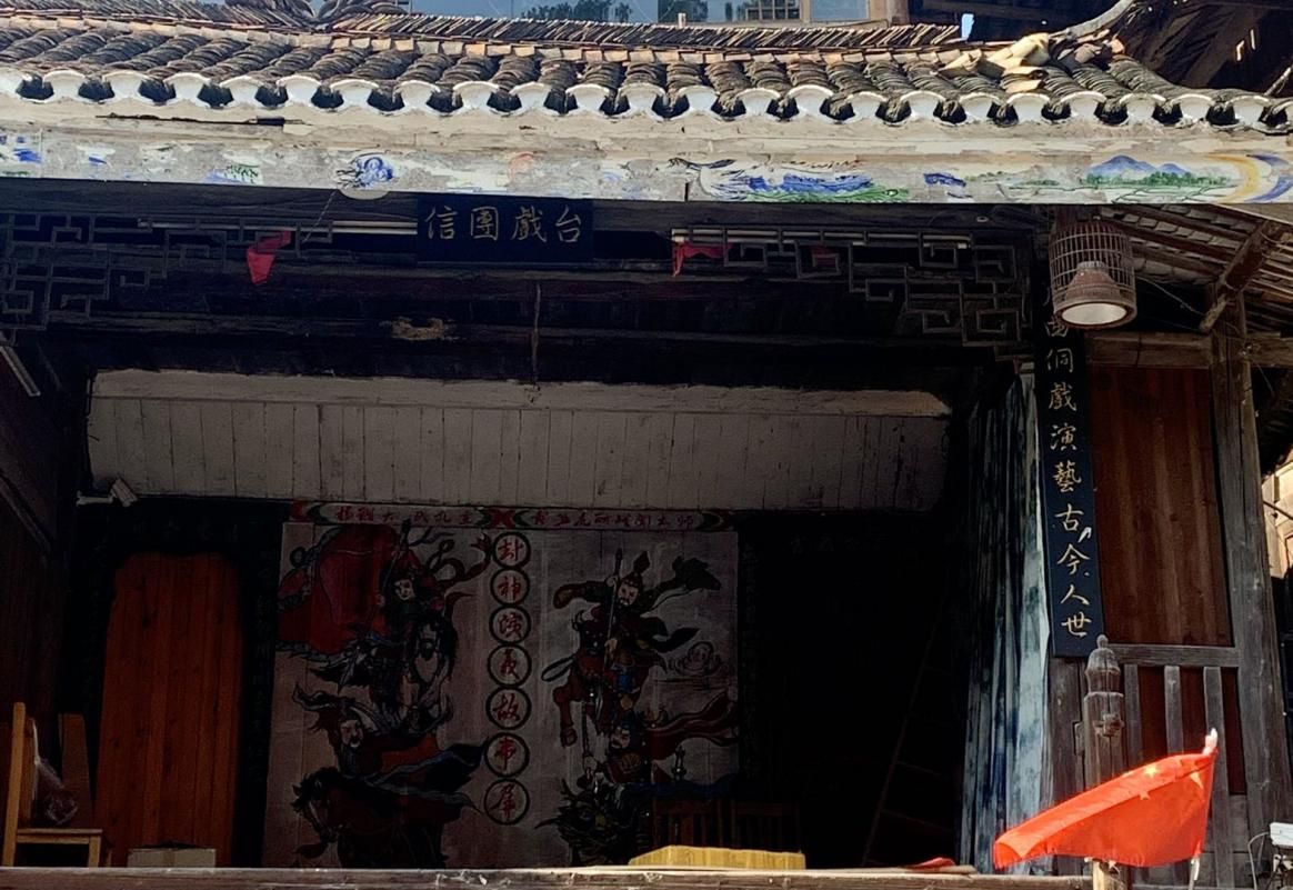 戲樓又稱戲臺,是侗族人演唱侗戲的場所,大多位于鼓樓附近。戲樓造型與侗族民房類似,用杉木建成,戲臺離地進兩米,前敞后封,后臺間壁留有兩個邊門,供演員出入之用。
