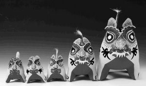 泥叫虎是山東高密的一種民間泥塑,起源于明代萬(wàn)歷初年,是形、色、聲、動(dòng)俱佳的民間工藝品,與撲灰年畫、剪紙并稱為“高密三絕”。泥叫虎腰部由牛皮連接,擠壓其頭部和尾部后,會(huì)發(fā)出響聲,叫虎一名由此而來(lái)。河南也有叫虎,又稱皮老虎。相較之下,山東的泥叫虎更具特色,而且在藝術(shù)風(fēng)格上更大氣,樣式憨態(tài)可掬,哨子發(fā)出的聲音也十分有趣。